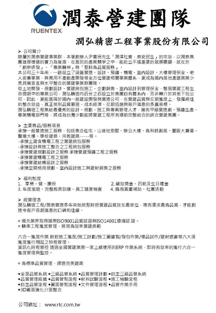 潤泰營建團隊徵才