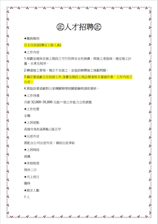 勝全營造有限公司徵才
